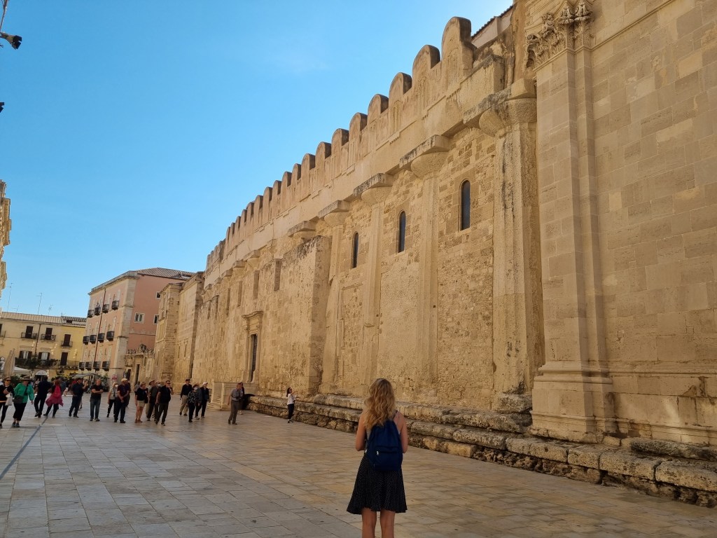 Multiculturalitate. Sicilia este o insulă aflată la confluența mai multor civilizații și având de-a lungul timpului stăpâni de religii diferite, astfel încât găsești de multe ori semnele acestor origini amestecate într-un ansamblu unitar. Au fost greci, arabi, romani, normanzi, și alții de care nu îmi amintesc, care au stăpânit insula sau părți ale ei. In poza am pus domul din Siracuza, pe numele oficial Cattedrale Metropolitana della Natività di Maria Santissima. De fapt, domul este situat în insula Ortigia, legată de Siracuza prin trei poduri. Este o biserică construită in secolul vii peste structura unui templu grecesc mult mai vechi. Coloanele templului original sunt vizibile, încastrate în zidurile bisericii. Este remarcabil că nu au avut o problema în a folosi un locaș de cult mai vechi și de altă religie, dimpotrivă au profitat de structura deja existentă. Un alt exemplu la fel de interesant este domul din Palermo, biserică transformată în moschee, pentru a fi apoi reconvertită în biserică. Fiecare religie a mai adăugat ceva construcției originale, dar fără a ascunde destinația anterioară.