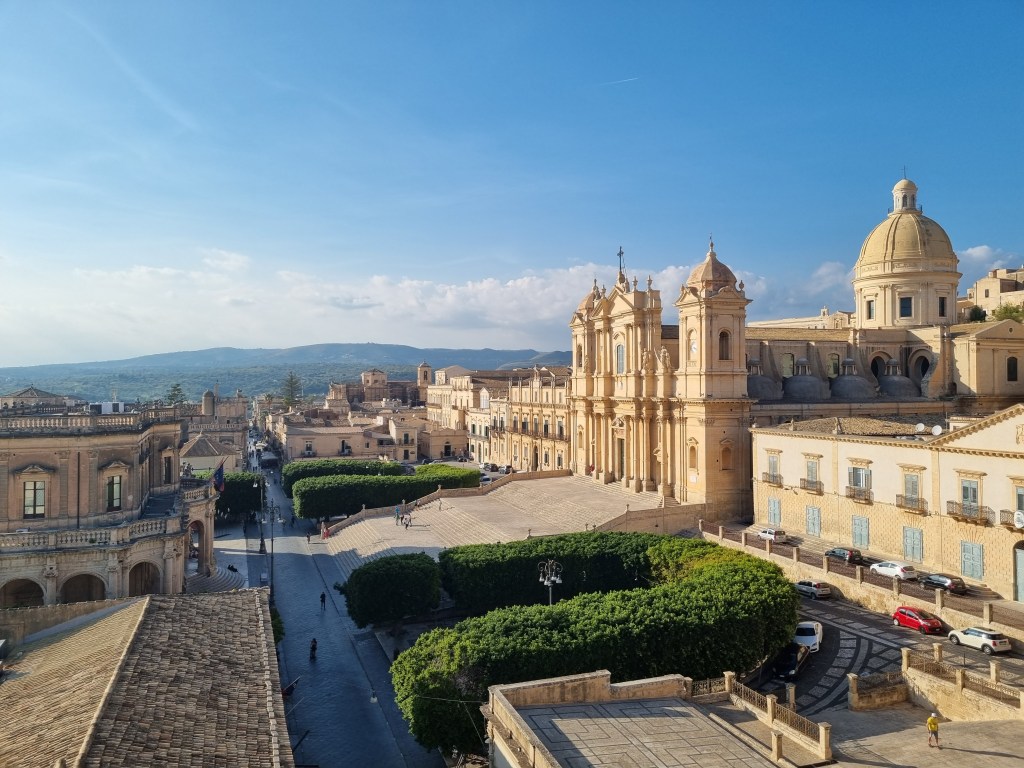 Biserici multe. Ca peste tot in Italia, pornind la cele foarte încărcate din Palermo la cele mult mai simple, de sorginte barocă, bisericile sunt prezente peste tot în număr foarte mare. În Noto, oraș baroc, ne-am urcat în cinci turnuri de la tot atâtea biserici, toate fiind situate in același cvartal. Sunt practic una lângă alta, într-o etalare a bogăției clericale. Ca să fiu un pic rău, aș zice că nu numai că își etalează bogăția, dar mai și plătești ca să o vezi. Ajungi la un moment dat să îți zici că ajunge, nu mai vreai să vizitezi o altă biserică. Oricum este destul de evident care a fost de-a lungul timpului organizația dominantă.